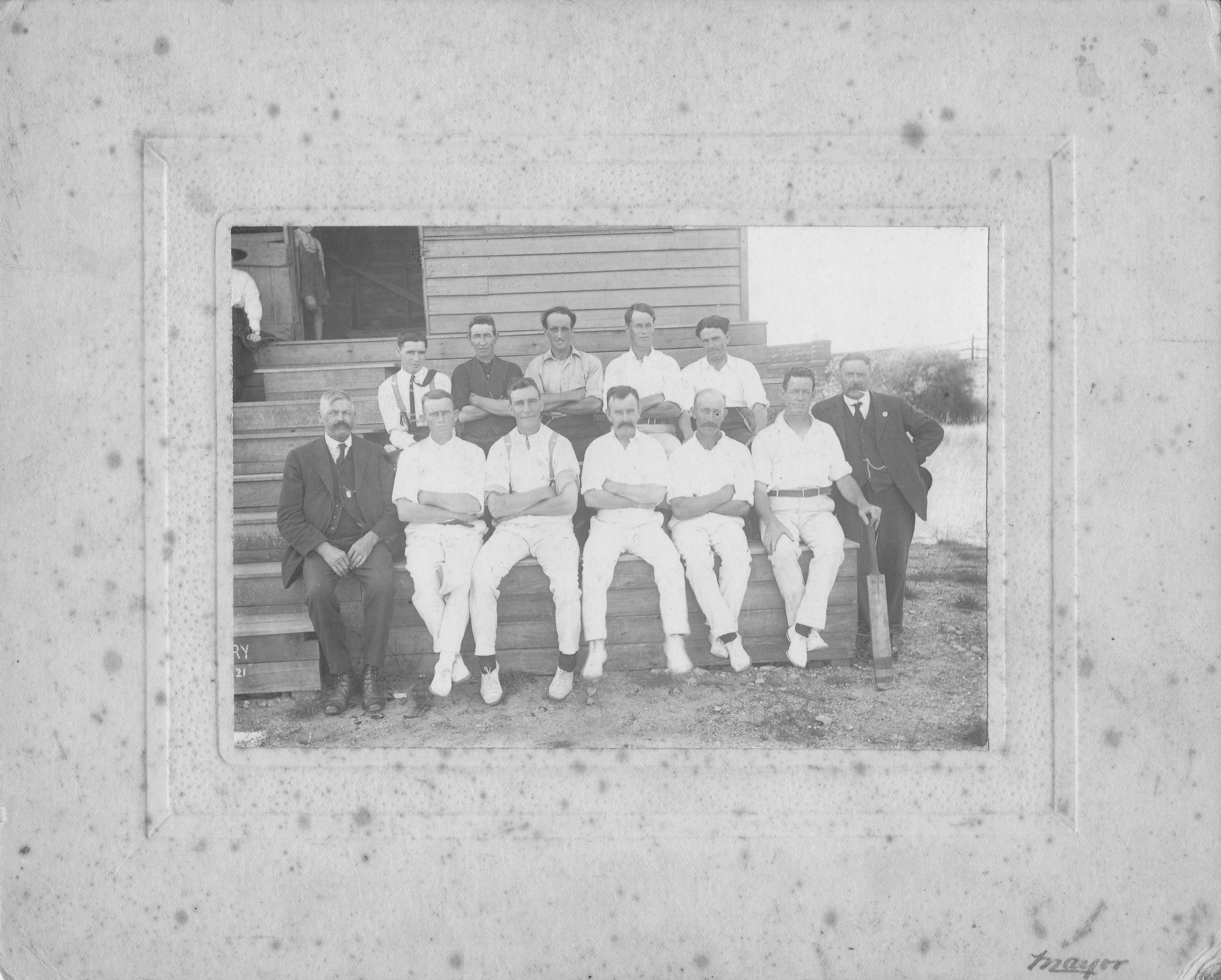 Sunbury Cricket Club on the steps of the Pavilion Sunbury Recreation Reserve c.189516/11/1901 – “The Sunbury cricketers played their first match on the new wicket in the Evans-street reserve on Monday last” (Sunbury News, Saturday 16 November 1901)